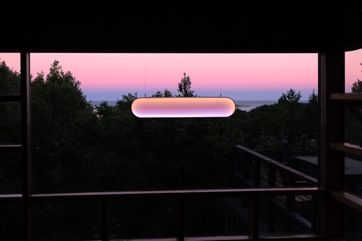 Sunneには、有機太陽電池や色素増感型太陽電池(DSSC)といった、軽量で循環性の高いソーラー技術が用いられています。これらはリサイクル素材由来で構成される場合もあり、従来のシリコンパネルに比べて環境負荷が低く、デザインへの統合性にも優れています。窓辺に設置された本体は、日中に太陽光を取り込み電力として蓄え、夜にはそのエネルギーを用いて発光します。さらに、太陽電池自体が明るさの変化を感知するセンサーとして機能し、時間帯に応じて光のトーンが自然に変化します。本体の緩やかなカーブ形状は、より多くの光を受けるための設計であり、機能とフォルムが一体化しています。発電・蓄電・発光がひとつのプロダクトに統合されることで、太陽エネルギーを“インフラ”ではなく、“日常の体験”として再提示する装置となっています。