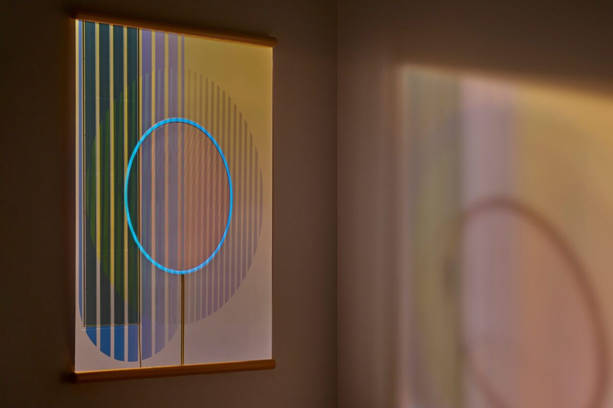 教会のステンドグラスのように、光と色が空間に物語を描き出す本作は、太陽光を“見るもの”から“使うもの”へと転換する試みです。本作には、薄膜の有機太陽電池(OPV)が使用されており、色彩を持つ半透明のフィルムとしてデザインに組み込まれています。従来の「発電装置」としての無機質な存在ではなく、色彩やパターンの一部として空間に溶け込むよう設計されている点が特徴です。発電と意匠が分離されるのではなく、“美しさそのものがエネルギーを生み出す”構造となっています。日中に受けた光は電気エネルギーへと変換・蓄電され、夜には作品内部の光源として再び放たれます。その光は単なる照明ではなく、色のレイヤーを通過することで柔らかく拡散し、時間や環境によって異なる表情を生み出します。技術と美を融合させながら、太陽エネルギーをポジティブな体験として再提示し、未来への希望をやわらかく照らし出す作品です。本作は、ヴィトラ・デザイン・ミュージアム や ポンピドゥー・センター などでも展示され、デザインとアートの両領域において高い評価を受けています。