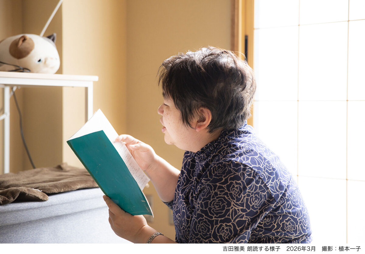 1982年、東京都生まれ。社会福祉法人しらかばの会 たてしなホーム(長野県北佐久郡立科町)で工芸班に所属。工芸班の活動の時間には、好きな文章の朗読を行う。また、日記を書くのが幼少期からの習慣という吉田は、食事や作業の後、自身の行動をノートに記録する。日記には、その日にあったことや食べたものについて記されており、吉田の日常が浮かびあがってくるものである。