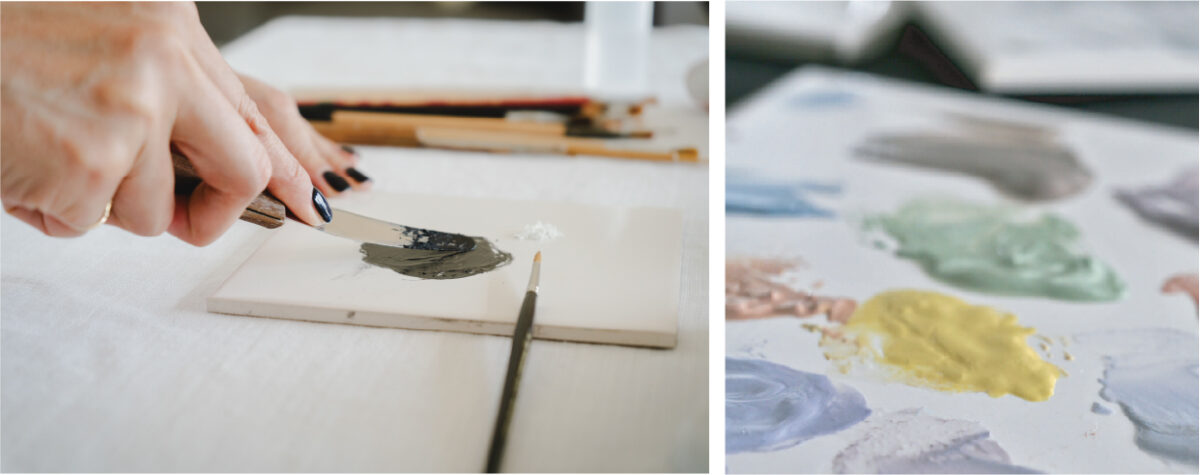 陶磁器特有のやわらかな質感と、ミニマルで洗練された造形。独自のブレンドで作られた粘土と熟練の職人の手によって焼きあげられた型に、ひとつひとつ手作業で選び抜かれた色をのせていきます。