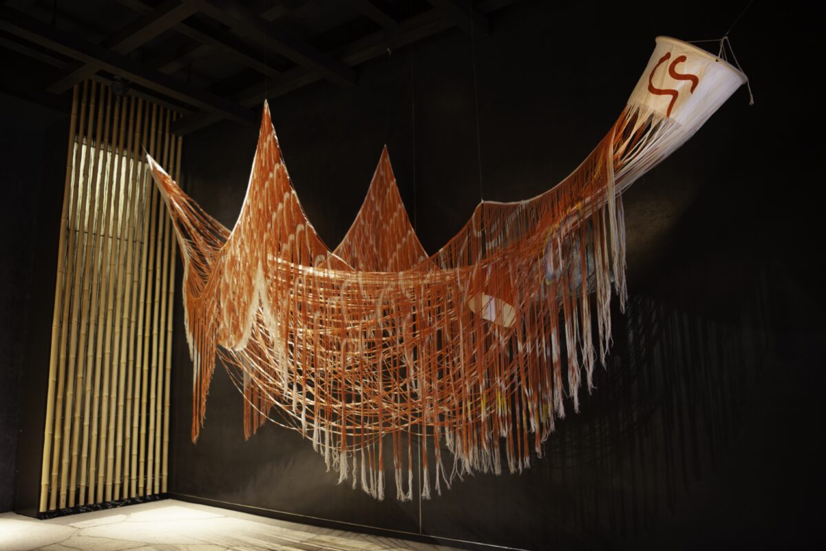 日本ではこどもの日に健やかな成長を願い掲げられ、初夏の空を彩る風景として親しまれてきた「こいのぼり」。新緑の季節にあわせて展示される本作品は、実際に空を泳いでいた「こいのぼり」を素材として用い、繊細な一本の糸になるまで分解し、風や人の動静、日差しや空間の移ろいによって揺れ動く、「気配」をまといます。カペラ京都では、アート作品の展示を通じ日本文化を新たな視点からご紹介し、滞在の時間に新たな奥行と余韻を提供いたします。