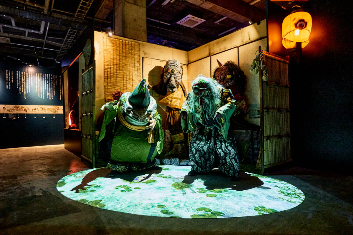 映像空間だけでなく、立体造形によってリアルに再現された妖怪たちも見どころのひとつ。鬼や天狗、河童、付喪神など、ユーモラスな妖怪たちが現実の空間に登場します。細部まで作り込まれた立体造形とイマーシブ演出のコラボレーションで、妖怪たちの表情や質感を間近で楽しめます。