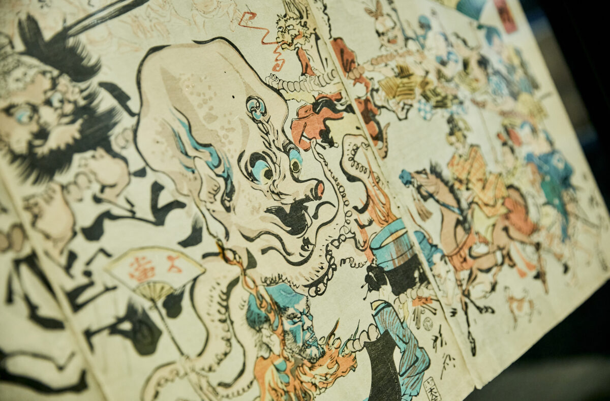 歌川国芳による妖怪の浮世絵版画の実物展示のほか、日本初の古書博物館・西尾市岩瀬文庫や小豆島の妖怪美術館の協力も得て、江戸・明治時代に描かれた「百鬼夜行之図」や「百物語」など、貴重な妖怪画・戯画・妖怪美術を解説。古代日本の神話や伝承など妖怪の文化的・歴史的背景を紐解きながら、妖怪が現代のポップカルチャーへとどのようにつながっているのかを探ります。
