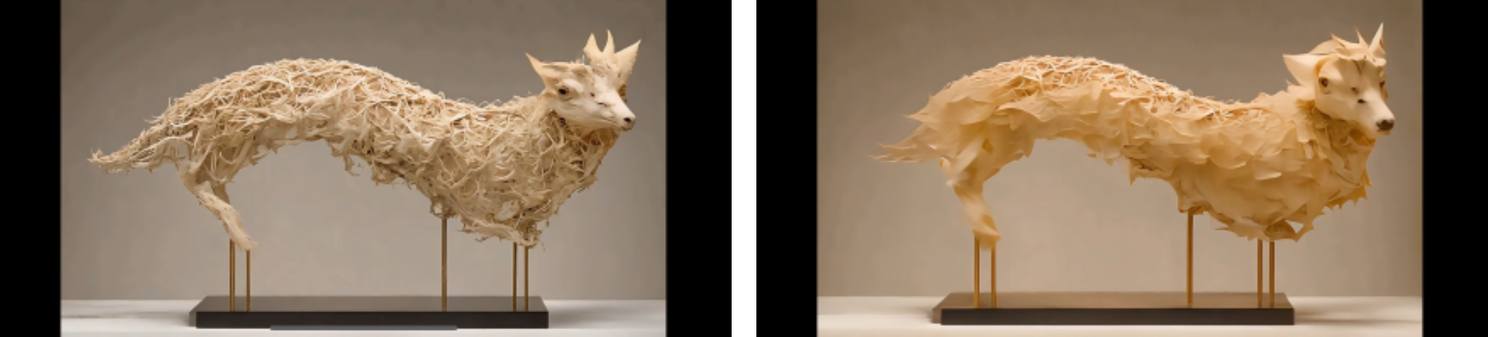 この作品においてはわざと⼿が5本指にならないように学習させていく⼿法で制作をした。AIに対して、「惜しい」という感想を持った時、無意識に排斥している⼈たちがいないだろうか。