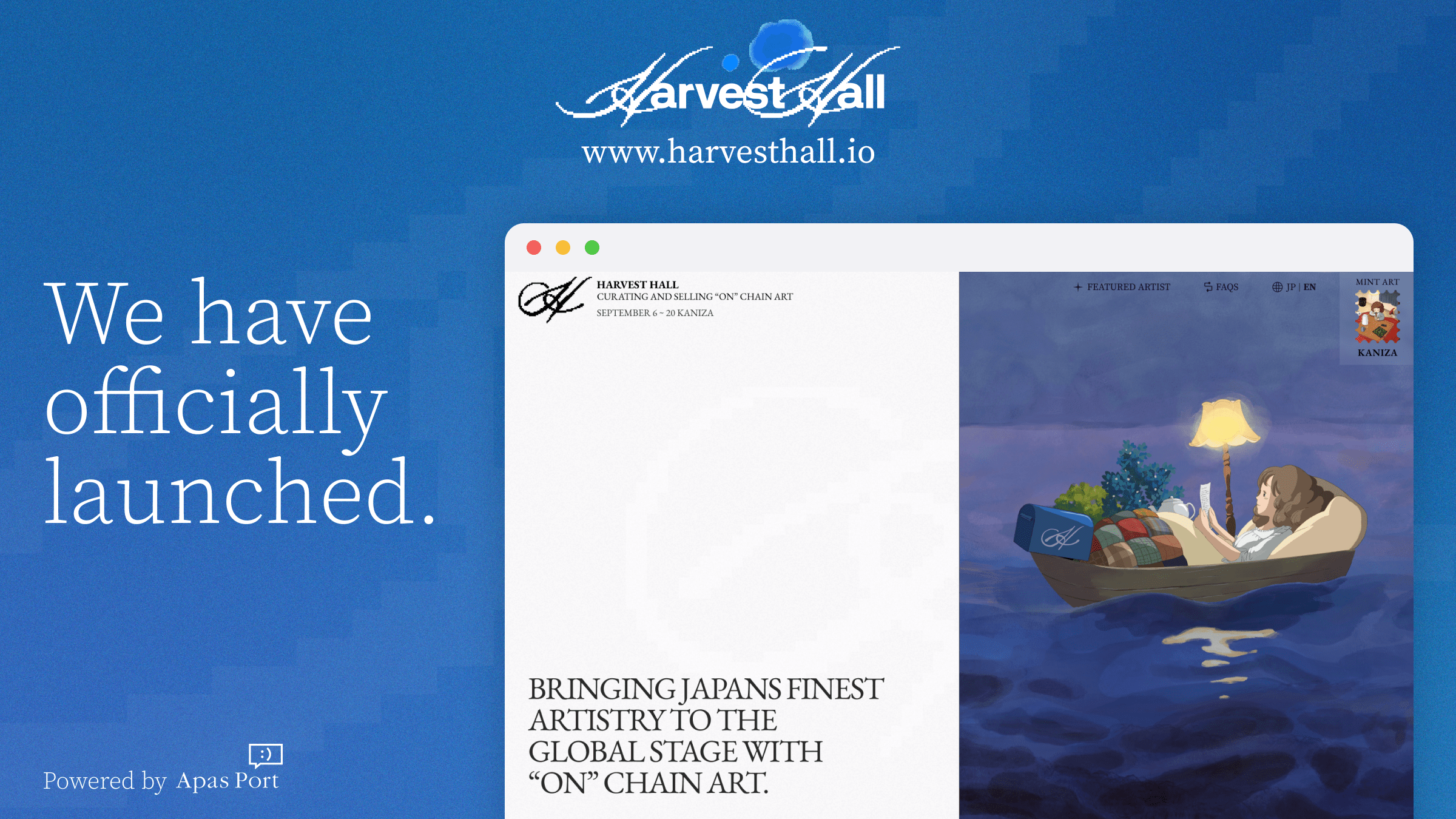 サービスの詳細と日本アーティストの作品を世界に届けるHarvest Hallの初プロジェクト”ON” CHAIN ARTに参加する一人目のアーティストを公式サイトにて公開いたしました。